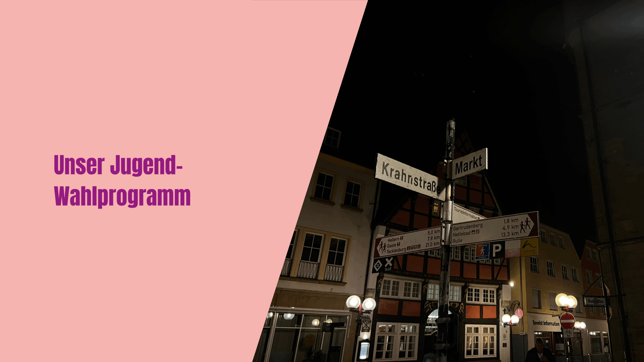 Wir sind die Jugend Organisation der SPD in Osnabrück. Unser selbst auferlegter Auftrag ist es jungen Menschen eine Stimme zu geben und uns selber in Politik bei uns vor Ort, im Bezirk oder Land einzumischen.